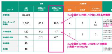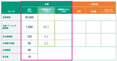1人あたり1時間の目標数を算出します。展示会責任者はこれを目標設定として管理することができます。