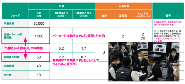 いよいよ迎えた会期中の動きも非常に重要です。ありがちなのは名刺・バーコ ード獲得数の「リード獲得」に集中してしまうこと。その先の「本商談予約数」を目標にする方が価値ある展示会の使い方といえます。