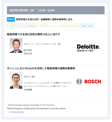 本講演を通じて、設計・品証部門の現場課題に直結したAI活用の可能性を実感いただければ幸いです。