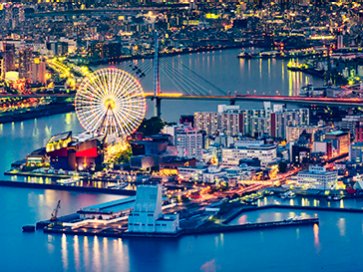 Harbor View of Kobe - Hyogo prefecture faces Seto Inland Sea in the south and the Sea of Japan in the north. There are scenic places like Seto Inland Sea National Park, San-in Kaigan Coast National Park, Mt. Rokko and Awaji-shima Island.