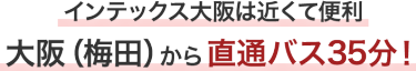 会期中、JR大阪駅より会場まで、直通バスが運行しています。乗り換え不要で便利です。